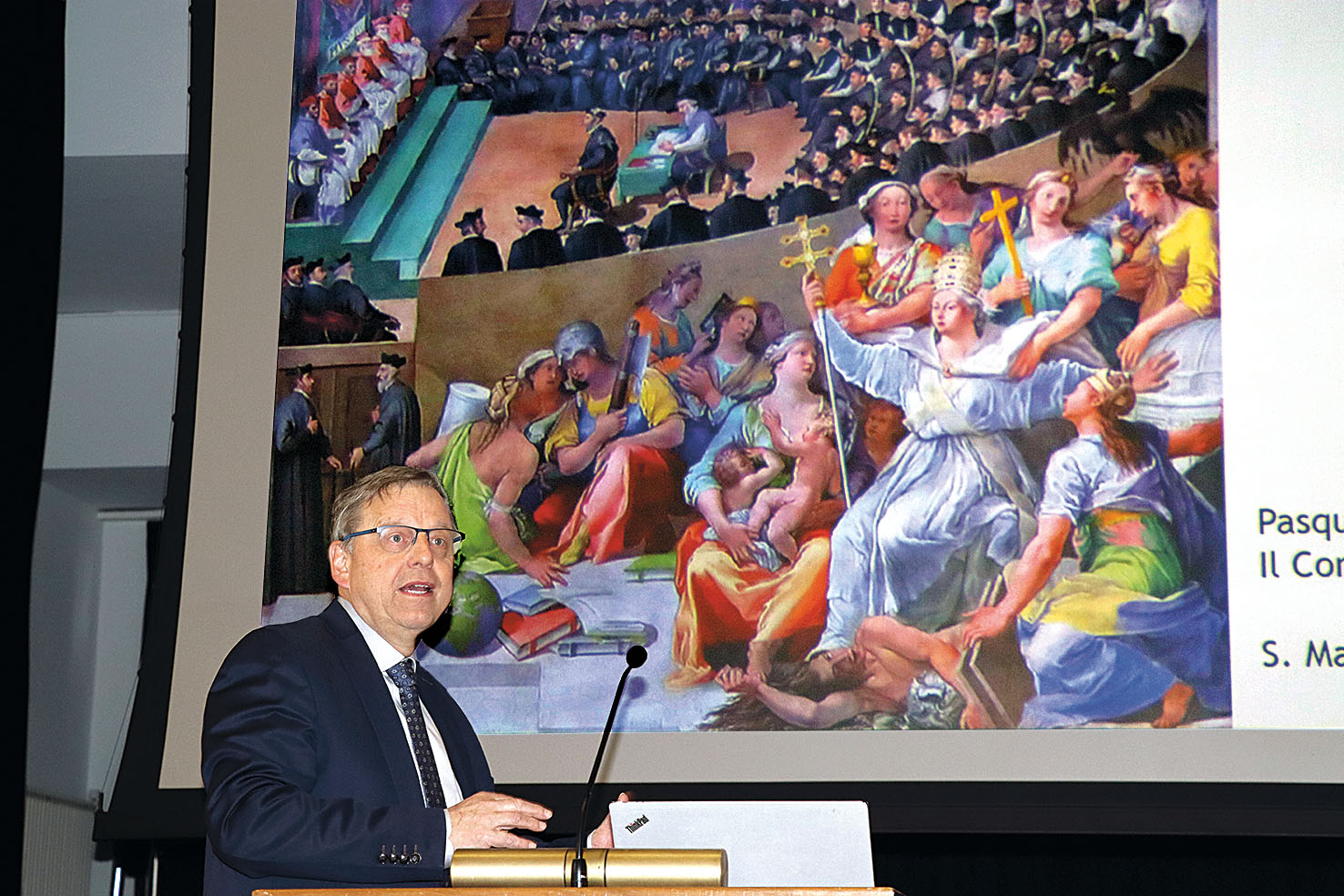 Papst Franziskus spricht von ihr und der Basler Bischof Felix Gmür erklärt sie zur DNA der Kirche : die Synodalität. Schwieriger wird es, wenn man sie definieren muss. Eine Definition heisst, « als Volk Gottes gemeinsam unterwegs sein » und trifft es relativ gut. Angesichts der anstehenden Probleme in der Kirche – vom Fachkräftemangel über steigende Kirchenaustritte bis zu einer allgemeinen Säkularisierung der Gesellschaft – erlebt der Begriff eine geradezu inflationäre Verwendung. In Wahrheit ist man dabei, ihn zu definieren. Um dabei zu helfen, lieferte Markus Ries in seinem Referat einen breiten geschichtlichen Hintergrund in vier Schritten.