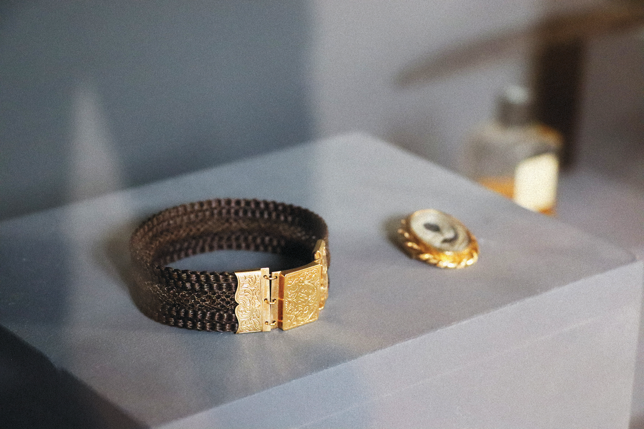 Hinzu kommt der Aspekt persönlichen Gedenkens. So wurde die Verarbeitung von Haaren Verstorbener zur speziellen Form des Andenkens, die von verschiedenen Frauenklöstern gepflegt wurde. In der Ausstellung ist ein Armband aus geflochtenen Haaren mit Silberschliesse zu sehen, das im frühen 20. Jahrhundert in St. Gallen entstanden ist. Wir zeigen aber auch persönliche Erinnerungsstücke wie beispielsweise das Halsband eines verstorbenen Hundes, das der Besitzer um eine Kerze gelegt hat, die er gelegentlich zum Gedenken an das geliebte Tier anzündet. Hat nicht jedermann irgendwo solche besonders geschätzte und entsprechend verwahrte Objekte ? Der Gedanke daran kann uns davor bewahren, dem katholischen Reliquienkult mit Verächtlichkeit zu begegnen.