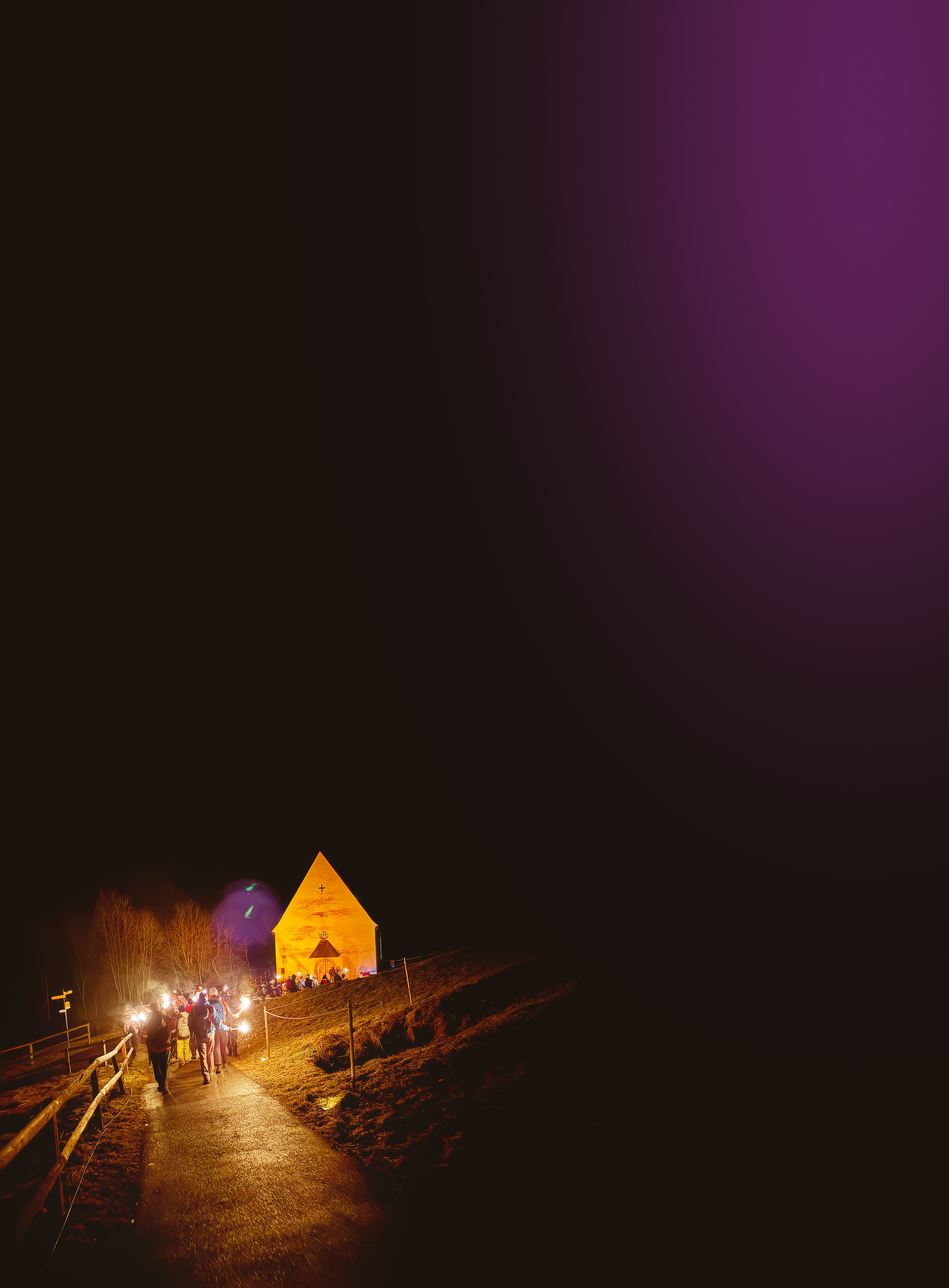 È seguita una seconda camminata di circa un’ora e mezza nel bosco fino a Flüeli-Ranft, dove c’erano altre attività, tra cui racconti in alcune case e giochi in palestra. « Ognuno trova qualcosa di suo gradimento » spiega Timo. È piaciuto anche che il programma non fosse rigido. Più tardi, il gruppo è sceso nella valle con le torce. Molti hanno definito questo momento come il più bello. Davanti la piccola chiesa in fondo alla valle si è tenuta una breve cerimonia con racconti, canti e celebrazione dell’esperienza comune. Dopo si è tornati alla stazione. Il viaggio di ritorno è sembrato più breve e ognuno ha ricevuto qualcosa per la colazione. La mattina presto il gruppo è rientrato in treno a Sciaffusa.