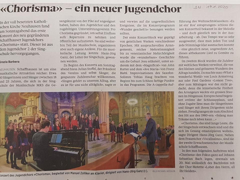 Die neue Konzertreihe 2020, die der Kirchenmusiker des Pastoralraumes Neuhausen-Hallau, Johannes Lienhart, initiiert hat, begann mit dem Jugendchor CHORISMA aus Schaffhausen. Dieser neu gegründete Chor bestritt sein erstes Konzert und bestand die Feuertaufe mit Bravour! In je einem klassischen und einem weltlichen Teil liessen die 30 Sängerinnen und Sänger unter der Leitung von Hans Jörg Ganz im wahrsten Sinne "Wunder gescheh`n" - so auch der Titel des gesamten Konzertes.