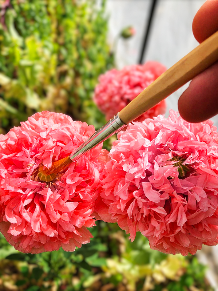 Es ist die lebendige Erhaltung von Saatgut, indem man es immer wieder anbaut und darauf achtet, dass die sortentypischen Eigenschaften erhalten bleiben. Dafür benötigt es Kenntnisse über die Vermehrung von Pflanzen : Es gibt selbstbefruchtende und fremdbefruchtende Pflanzen. Bei den Selbstbefruchtern ist es nicht kompliziert, die bestäuben sich selbst. Aber bei fremdbefruchtenden Pflanzen kann es zu Verkreuzungen durch Insekten und den Wind kommen. Dann sind die Sorteneigenschaften nicht mehr gewährleistet. Als Beispiel erwähne ich gerne die Ziermohnsorte Schaffhausen. Es ist ein wunderschöner Schlafmohn mit rosaroten Blüten. Als ich diese Sorte übernahm, stand sie auf der roten Liste von ProSpecieRara. Es gab nur noch wenig Saatgut. Als ich es im ersten Jahr angebaut hatte, kam alles Mögliche – gefüllt, ungefüllt, andere Farben. Ich musste selektionieren, was sortenspezifisch war. So habe ich das sortentypische Saatgut immer weitergezogen, um es zu bereinigen. Der Mohn blüht bei mir unter einem Netz, damit er nicht verkreuzt wird. Ich bestäube ihn von Hand.