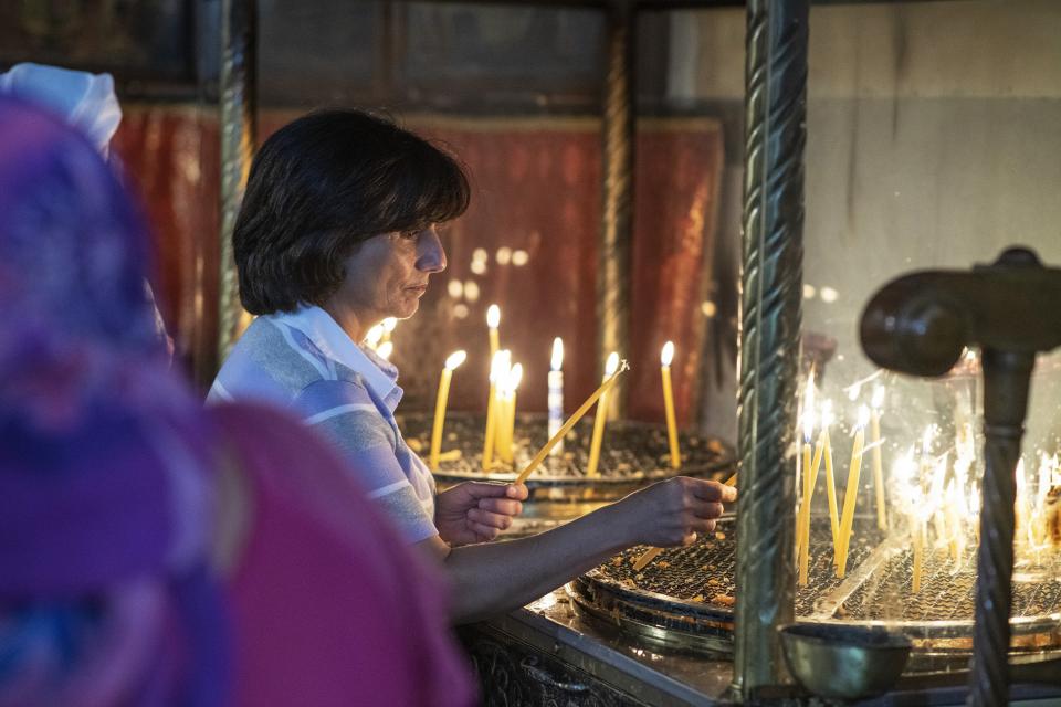 Besonderes Ritual: Fast jeden Tag besucht Hiyam Marzouqa vor der Arbeit die Geburtskirche in Bethlehem und zündet Kerzen an.